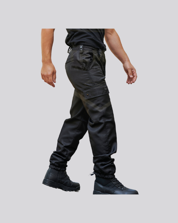 Pantalon tactique : 6 sur-passants fermés par double pression. Ceinture élastique